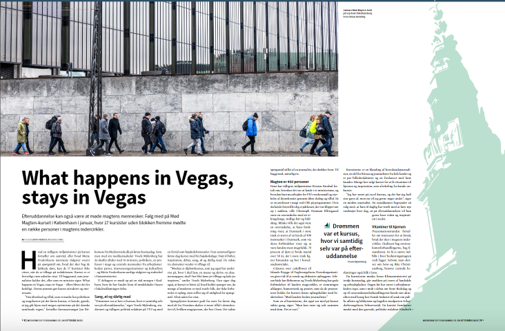 Dette kursus er for dig, der vil møde og forstå den moderne magt. I fire intense dage rejser vi dybt ind i magtens indercirkler. Du kommer i øjenhøjde med Danmarks tungeste spillere i den politiske, den kulturelle, økonomiske og organisatoriske verden. Og du får masser af frisk luft og oplevelser.
